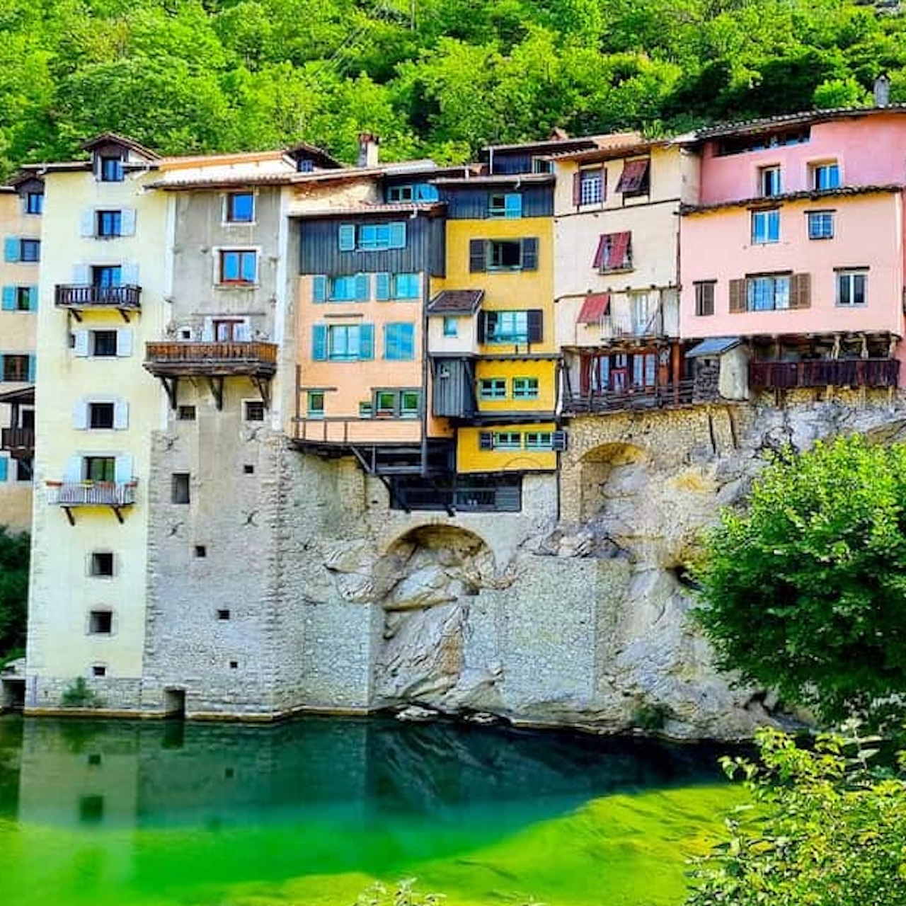 À l’entrée des gorges de la Bourne, le village de Pont-en-Royans est une véritable curiosité, avec ses maisons colorées suspendues au-dessus de la rivière. En été, des bassins permettent aux petits de se rafraichir!